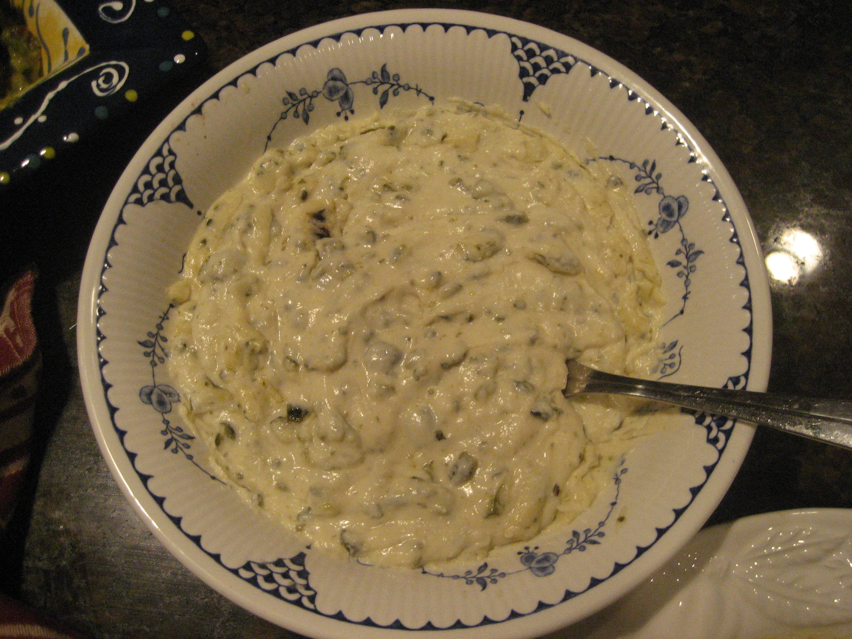 In a cast iron skillet, make a roux by melting the butter and stirring in the flour. Then add the milk and whisk until smooth. Remove from heat and mix in the jack cheese. Then mix in the goat cheese, peppers and scallions. Return to the stove to heat up again and whisk a little more. You’re done. Dive in!